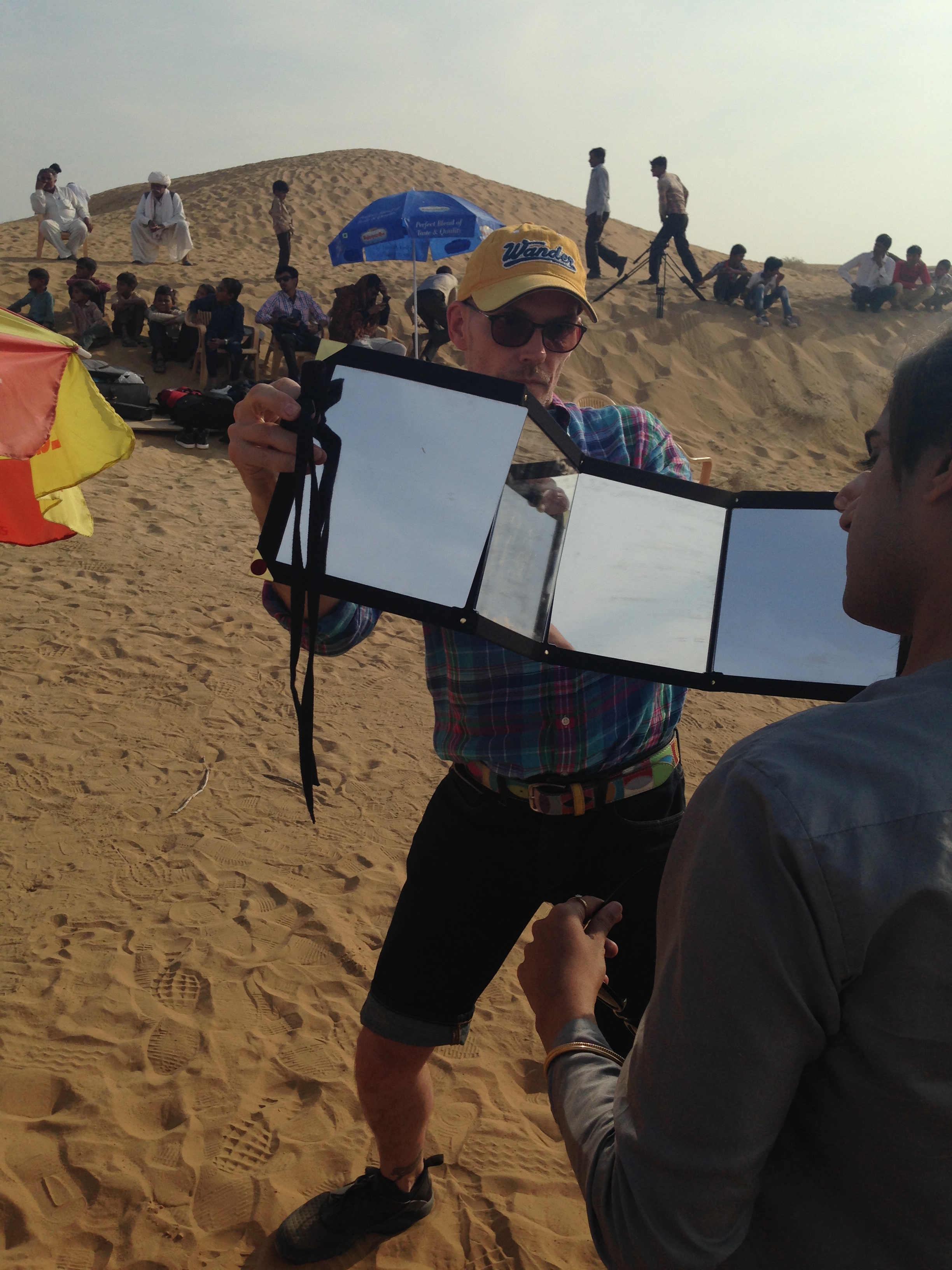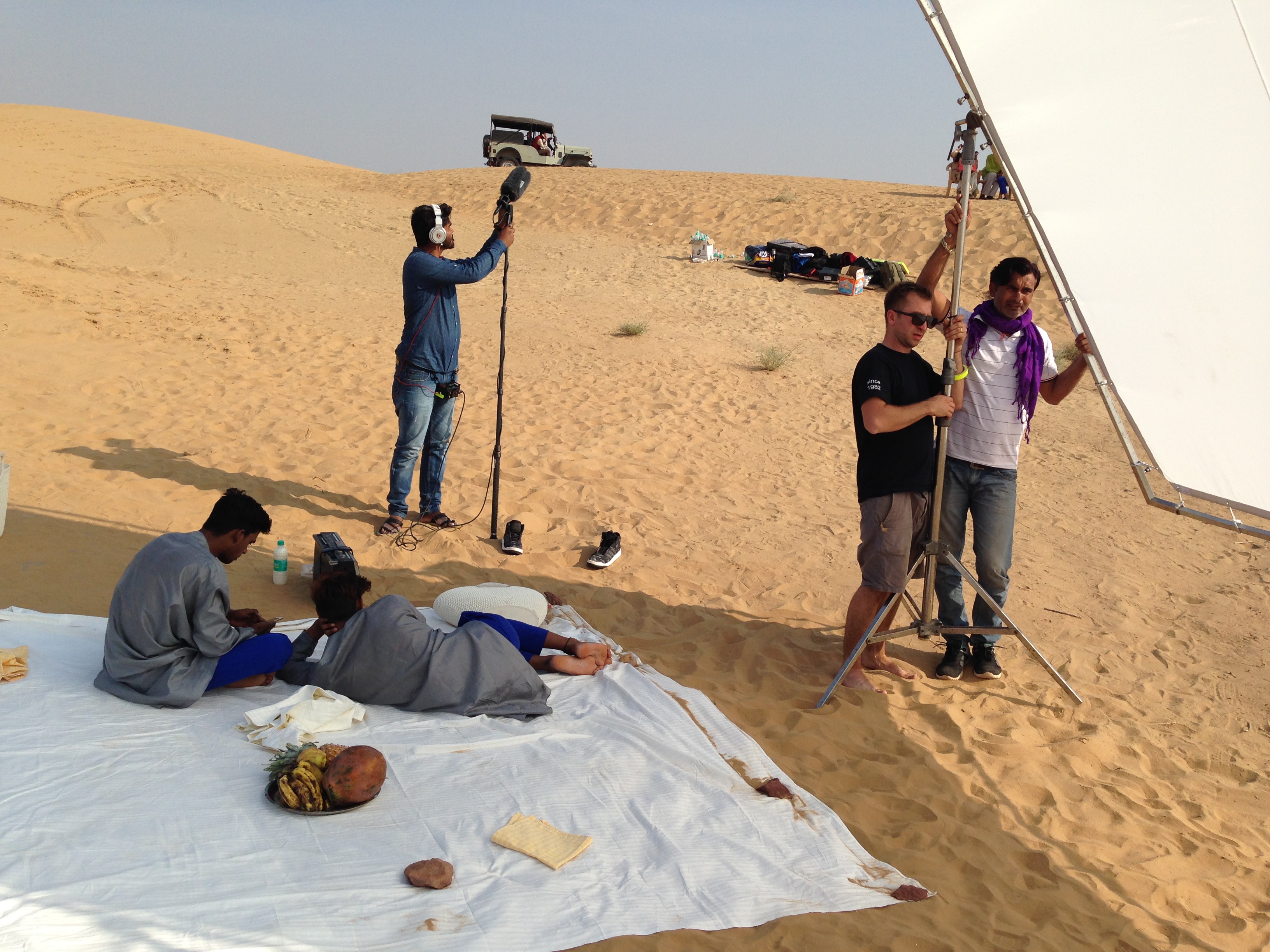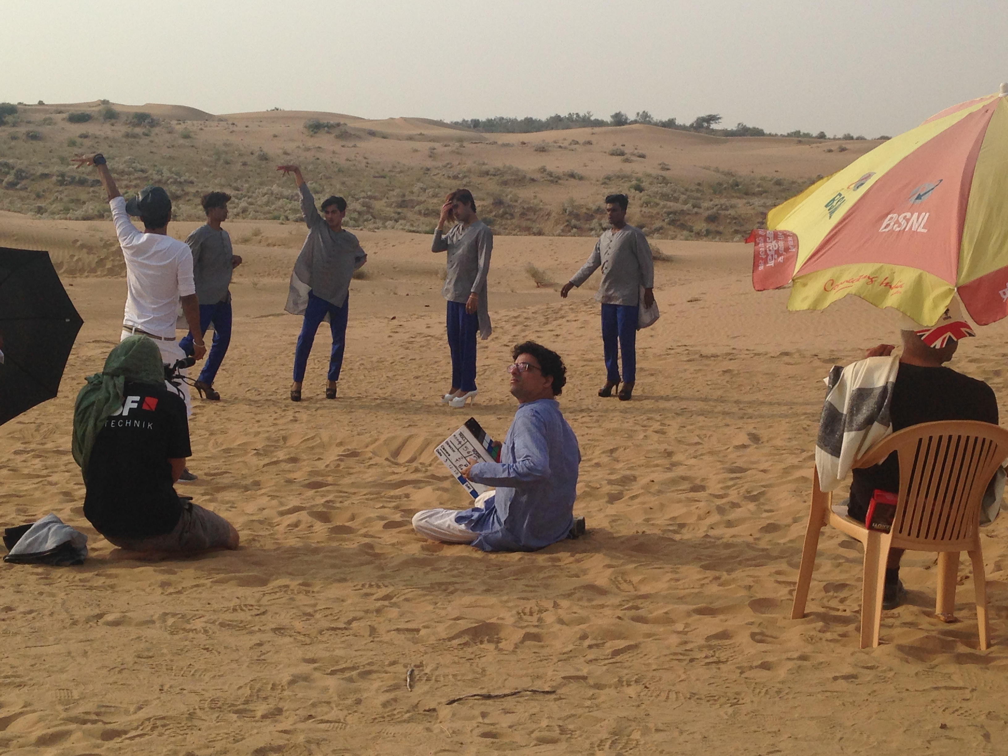 Urmi in the desert Dancing boy 4 Mohit Singh (Aakash) Shubham Kumar Sushant press shot Dancing boy 2 Lelin Kumar Zahid press shot Bhuushan in a cafe Sandy (choreographer). Yogi press shot Boys on way home from school stop to watch production Sunset in the desert Resting between takes Urmi and Yogi after make up This beetle appears in the film! John the make up artist and Sushant check his make up (with audience!) Dance rehearsal Setting up for a take Local kids excited to see a film being shot near their village Sunset in the desert